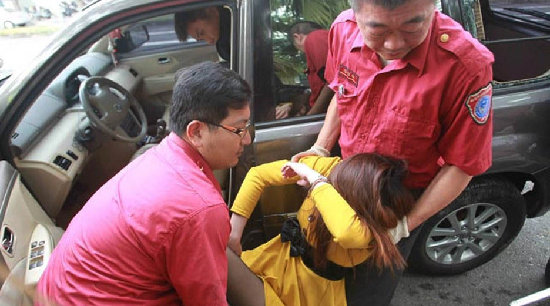 ????近日,高雄市一名曾姓女子(二十九歲)早晨酒駕,結(jié)果行經(jīng)中華五路一處路口停紅燈時,因不敵醉意陷入沉睡。往來人車發(fā)現(xiàn)女子癱軟在駕駛座,以為女子急病紛紛報案。警方獲報前來破門,并以鐵鉤開啟車門,此時曾女疑誤觸油門,導(dǎo)致車子起步往前滑行。一名救援的葉姓小隊長見狀拔腿追車,但卻不慎跌倒,扭傷腳踝。所幸車子前進五十公尺后即自撞安全島停下,眾人才順利將