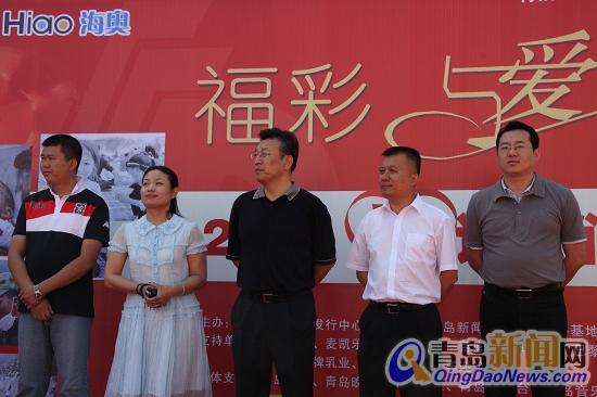 ??? 出席閉幕式的嘉賓(從左到右依次為“我愛賽拉圖”車友會隊長牟鵬先生、青島福利彩票發行中心主任助理趙婧如女士、青島日報報業集團副總編輯姜鳴鈞先生、青島福利彩票發行中心副主任于軍先生、青島新聞網副總經理張衛華先生) ????