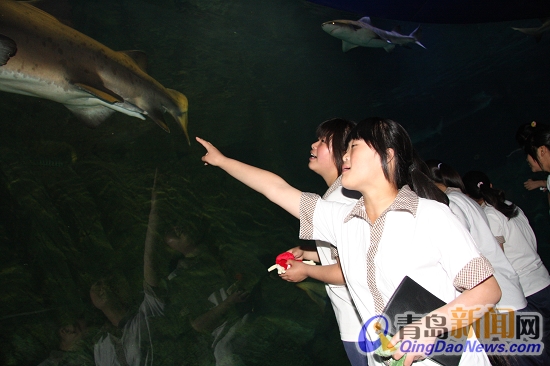 ![]() ????孩子們被巨大的鯊魚吸引 ????第一次來到極地海洋世界,孩子們都非常興奮。一進門,孩子們就被映入眼簾的北極熊吸引住了,透過巨大的落地玻璃,看到北極熊水中游動時笨笨的樣子,孩子們開心的和北極熊“打招呼”,接著孩子們又“拜訪”了海獅、海豹、白鯨、鯊魚和各種各樣的魚類,白鯨扭動著龐大的身軀,悠閑地游來游去,還在馴獸師的指揮下,“引吭高歌”,引得孩子們一陣歡呼。而透過玻璃窗,孩子們居然可以近距離的看到兇猛的鯊魚露著白色的尖牙,這種體驗讓孩子們非常驚喜。 ????在驚喜聲和歡呼聲中,孩子們來到了極地海洋世界的動物表演館,在這里,五只海豚從水中一躍而起,激起美麗的水花。精彩的表揚,贏得了孩子們的陣陣掌聲,聰明的海豚還為大家展示了轉呼啦圈的絕技,現場還有兩名孩子走到舞臺最前方,聆聽了了海豚美妙的“歌聲”,海豚還親吻了這兩名遠道而來的小客人。一路歡聲笑語,游覽完后很多孩子還意猶未盡。一位來自青島電子學校的孩子在接受記者采訪時說,感謝青島的好心人,讓他們有機會來到青島,今天游覽極地海洋世界她非常高興,也學到了很多海洋知識,她將告訴她在四川的同學,她在青島非常開心,因為有很多好心人幫助他們。 ????