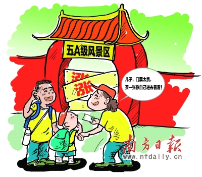 景區門票價格上漲帶來的是出游成本壓力漸增。“簡單算一下就知道了,如果打算去九寨溝和黃龍,在旺季的時候僅這兩家景區的門票已經達到了420元,而廣州飛成都的機票很多時候也差不多是這個價錢而已,有時候買到特價票還會更低?!睆V州市民羅先生在給記者算這筆費用的時候頻頻搖頭,景區門票堪比機票價格,這樣的事情恐怕也只有中國才會出現,“而如果是家庭出游,門票費用的比重就大幅增加,一家三口去玩一趟,常常是門票費用就占掉了一千五至兩千元。”