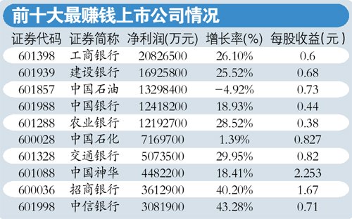 前十大公司每秒凈賺3.14億元 上市公司凈利增13.2% 漲幅創(chuàng)三年新低