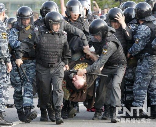 CNTV消息 據俄新網5月7日報道,莫斯科內務總局發布消息說,警方在莫斯科市中心反對派集會期間總共抓捕人數超過400人,有20名警察受傷。6日,俄羅斯反對派——全俄羅斯人民陣線為抗議普京就職,在莫斯科俯首山舉行集會活動,總共聚集了3萬人。