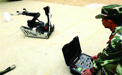 在“坦克機(jī)器人”無法進(jìn)入的情況下,則必須人工排爆——武警戰(zhàn)士必須穿上排爆服進(jìn)入現(xiàn)場,以保證安全。