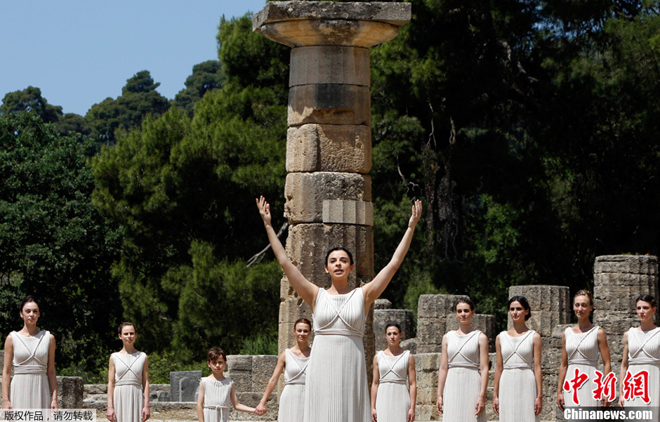 5月10日,2012年倫敦奧運會圣火采集儀式在希臘奧林匹亞的赫拉神廟舉行。