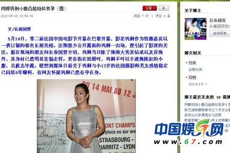 5月16日19點38分,知名博主長春國貿在微博中發了兩張鞏俐的照片,一張為身穿貼身高貴銀色晚裝,另一張有網友提供的疑似鞏俐到巴黎某商場購物時的照片,鞏俐穿白色緊身裙,照片上鞏俐身材略顯豐腴,小腹微微隆起。對此,長春國貿稱“14日鞏俐亮相法國中國電影節開幕式,其身材明顯發福走樣,并在拍照時手遮微隆小腹。巧的是幾天前鞏俐到巴黎某商場購物時也曾被拍到小腹明顯隆起的照片。因此有網友懷疑鞏俐為了深愛的小男友已冒險高齡懷孕,準備為其生子?!?/p>