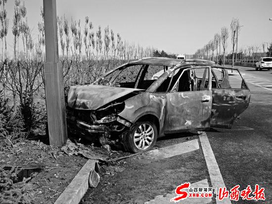 ????4月24日晚,大同市御河東路寺兒村路段附近,在一輛熊熊燃燒的小轎車里,被周寶刀劈錘擊過的“那家伙”徹底葬身火海。