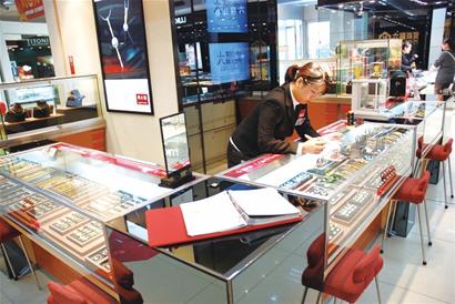 “當下的價格與去年同期基本持平,1年過去,金價又回落到原來水平?!崩蛠睃S金珠寶公司于經理告訴記者,去年五一后價格也是在360元/克水平。金價下降,令前往珠寶店購買金飾的市民增多。在投資金條方面,進店咨詢的顧客也增多,但有的顧客擔心金價仍會下調,持觀望態度。業內人士梁女士說,在目前的價格平臺上,金價會穩定一段時間,短期看繼續下跌的可能性不大。(記者 劉文劍 攝影報道)