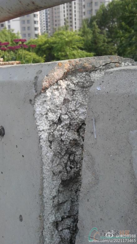 ????青島新聞網5月19日訊? 今天上午,網友“米沙8988”在新浪微博上爆料,青島一處立交橋出現明顯的斷裂縫隙,水泥后面,露出泡沫填充物。立交橋上居然可以使用泡沫?這些斷裂縫隙是否會影響過往車輛和行人的安全?一石激起千層浪,這條原始微博在互聯網上被轉發2000余次,許多網友提出自己的疑惑和擔心。