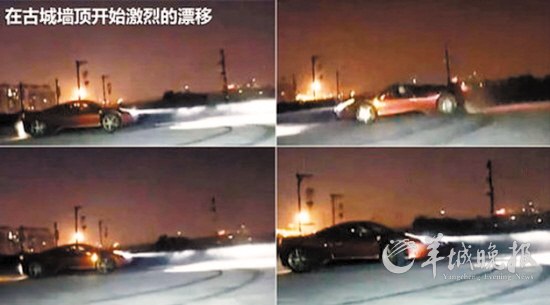 “深喉”:這就是很有意思的地方了。即使沒有其他安排,中華門晚上9時也要關(guān)門。游客們最遲10時也應(yīng)該全部散去了。即使在城堡外面市民可以拍攝到吊車把跑車吊上城頭的視頻和照片,也不可能再走到三層城堡平臺上去拍“漂移”的視頻。所以,這個視頻不可能是游客或者普通市民拍攝的。