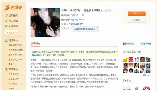 微博送祝福:若晴,你若安好,便是我們的晴天