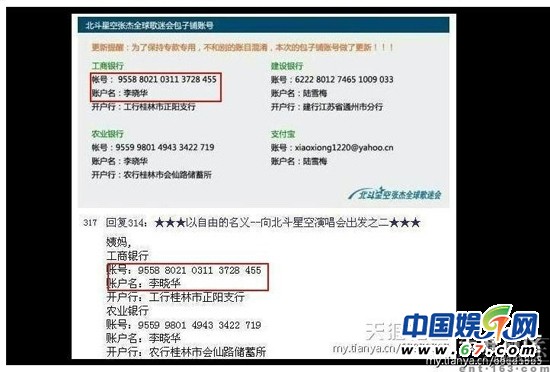 直至前日,張杰才就“私吞捐款”傳言委托天娛發表個人聲明。聲明中,張杰雖然承認歌迷會的確幫他支付了“部分違約金”,但表示這筆捐款從未經他手。正式的聲明并沒有為整個事件畫下句號,反而使之越演越烈。昨日凌晨,又有一位自稱是“當年參與集資事件的星星”的網友繼續爆料,聲稱要還原捐款事件的真相。更驚人的是,原本所說的粉絲為張杰募捐的解約金數目也從原來的100萬變成140萬。該名“前星星”透露,當年官司一開始在上海敗訴后,張杰就被判違約賠50萬(當時張杰自己出10萬,一粉絲幫忙出40萬),但與上騰的經紀合約依然有效。但是“仍是上騰藝人”的身份使張杰的發展處處受制,于是歌迷會經過再三商量,決定采用“集資贖身”的下下策,最后在8天之內成功地籌得105萬,“多余的5萬,按匯款順序,歌迷會在群內公布了一份可以申請退款的名單,在規定時間里沒退款,這部分錢款將用于閏土新專輯的購買。當時申請退款的有3萬余元,剩余1萬余元則用于卓越網網購。”該星星表示,雖然賬目圖未保存下來,但當時“每一個參與匯款的星星都收到了一份文件包,里面有匯款憑證和公證書等文件。”