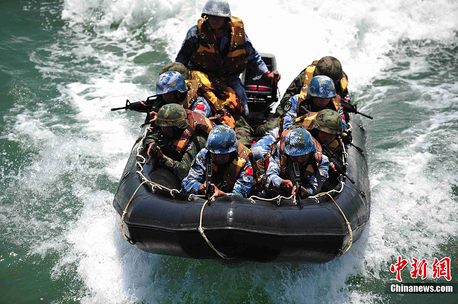 5月24日,“藍色突擊-2012”中泰海軍陸戰隊聯合訓練在汕尾海域舉行兩棲登陸戰術協同訓練和反恐破襲戰斗針對性訓練。中新社發柯小軍 攝