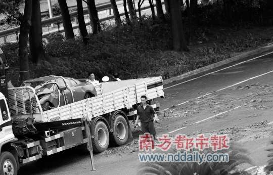 肇事的跑車被運走。