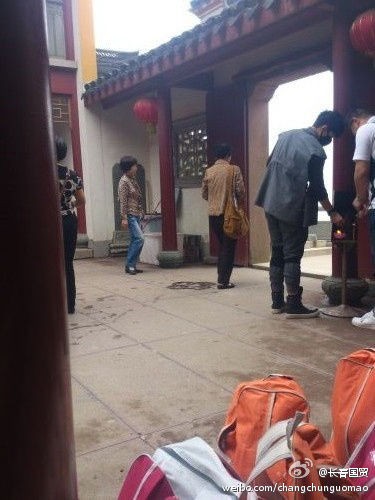 長春國貿于5月27日23點02分發布的這條微博上傳了一張張杰的側影照,照片中的他身著一身休閑服,頭戴口罩,正以右手持香,在一盞佛燈前點燃手中的香火。該微博透露:“近日有網友爆料稱,在佛教勝地普陀山游玩時偶遇張杰,并公