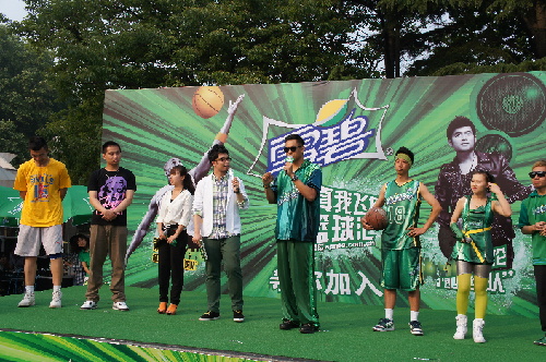 ????下午4時,黑人陳建州乘坐雪碧SUV閃亮登場,隨行而來的透心涼綠隊隊員拋磚引玉,先為大家?guī)砹司实谋硌荨?table border="0" align="left" cellspacing="0" cellappending="0">