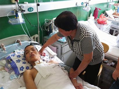 ????據宋女士介紹,鄧少偉今年26歲,在城陽四方機廠上班。4月8號是個周末,鄧少偉準備外出坐車去城陽市區買東西,他剛從單位宿舍出來要過馬路時,一輛雪佛蘭轎車突然疾馳過來,毫無防備的鄧少偉躲閃不及,只聽“咣”的一聲,就撞上了。結果,鄧少偉當場被撞飛,頭部、臉上、下肢等多個部位鮮血直流,隨后,鄧少偉被送到了城陽人民醫院救治,經檢查是腦干出血,至今昏迷不醒。