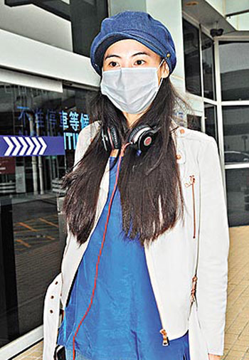 柏芝在機場臨上車離開前,主動拉高帽子給記者拍照