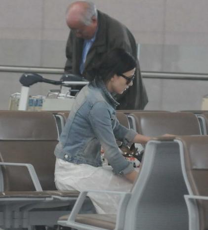 高圓圓素顏赴機場無人識 苦等男友趙又廷(組圖)