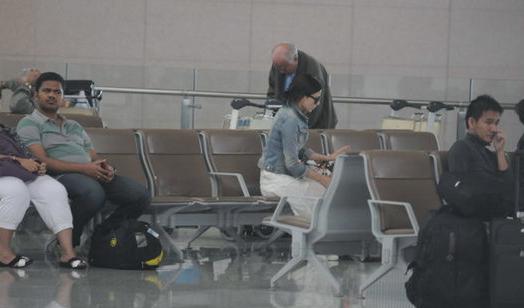 高圓圓素顏赴機場無人識 苦等男友趙又廷(組圖)