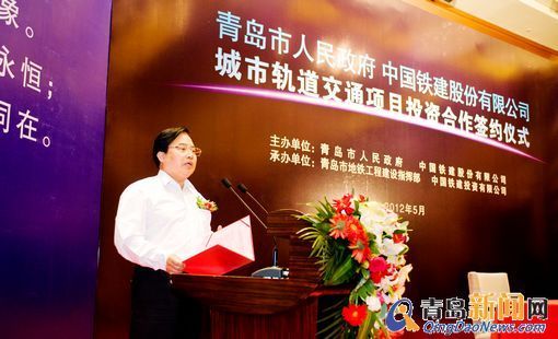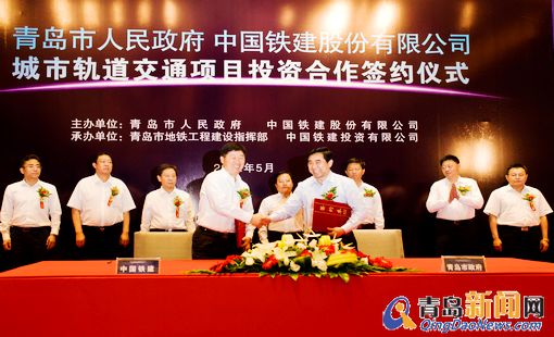 ???? 青島市副市長王建祥、中國鐵建副總裁張宗言分別代表青島市人民政府和中國鐵建股份有限公司,簽訂了《青島市城市軌道交通工程投資合作框架協(xié)議書》。此次合作是在2011年10月31日