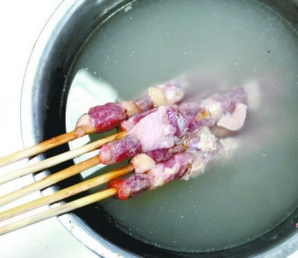 > 正文肉串泡在熱水中后,清水變成了"濃湯"。