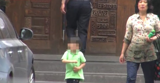 日前某天中午,記者在將臺路附近的一家高級韓式燒烤店門前意外發現了董潔潘粵明的路虎汽車,下午一點多鐘,一位中年女士帶著一個活潑可愛的小男孩走出餐廳,記者認出他就是董潔