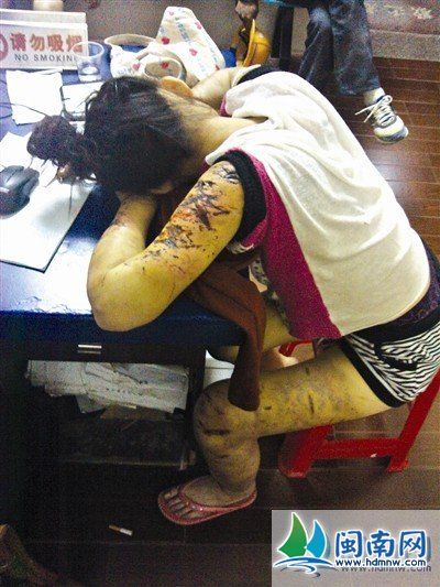 ????當在泉秀派出所看見小萍(化名)時,記者幾乎不敢相信自己的眼睛:這名16歲少女,臉上、四肢皮膚淤青,裂開很多道傷口;她揭開衣服一角,背上如亂刀砍過,傷口凝成血痂,黑乎乎一片,幾乎沒有一塊完整的皮膚。
