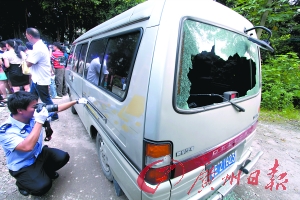 “有人打爛我的車。”當(dāng)記者們正在非法拼裝摩托車的工廠內(nèi)進行采訪時,佛山電視臺的司機彭師傅沖到廠門往里喊。現(xiàn)場執(zhí)法人員和記者連忙出去,只見電視臺的面包車后窗玻璃被砸了個大窟窿,玻璃片在車內(nèi)外散落。