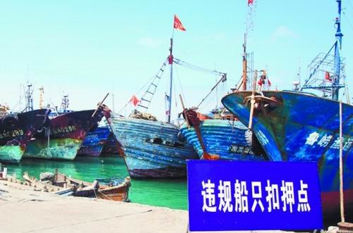 沙子口漁港碼頭專門設置了"違規船只扣押點"