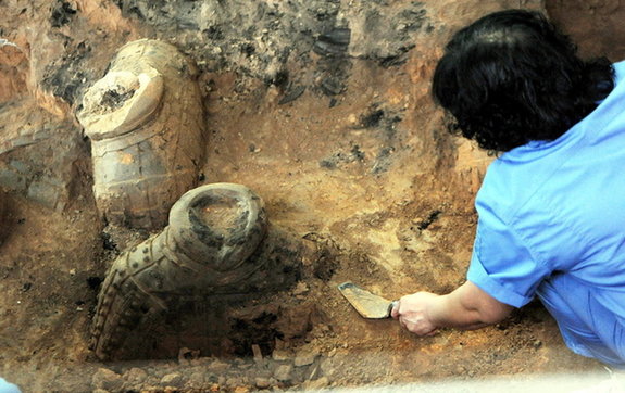 秦兵馬俑考古現場探秘 現項羽放火焚燒痕跡(組圖)