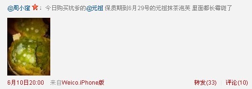 > 正文網(wǎng)友“周小漥”微博爆料:青島元祖出售發(fā)霉泡芙