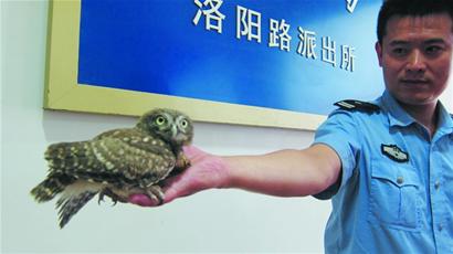 ????“這只小鷹是我剛才從流浪狗的嘴里奪下來的。”男青年向民警講述,他今年19歲,從河南來島城打工,這只小鷹是他在河邊偶然發(fā)現(xiàn)的,當(dāng)時一只流浪狗已經(jīng)咬住了小鷹的翅膀,他丟石塊砸跑了流浪狗,把小鷹救了下來。他以為這是只普通的鷹,沒想到是只貓頭鷹。他解釋稱,他只是在訓(xùn)練貓頭鷹的服從性,想要學(xué)電視上那樣“熬鷹”,讓這只剛剛出生不久的小鷹徹底馴服,以后當(dāng)成寵物養(yǎng)著,沒事還能放出去抓個兔子什么的。“那樣感覺特別酷。”男青年稱。 民警聯(lián)系鳥類專家治傷 “貓頭鷹是國家二級保護動物,非法獵殺或買賣貓頭鷹,都要受到法律的嚴懲。”洛陽路派出所的民警稱,他們對男青年批評教育后,讓他寫下保證書后離開。昨天市動物園的野生鳥類保護專家趕到派出所,經(jīng)過檢查,小貓頭鷹的右翅膀關(guān)節(jié)有輕微錯位。“可能是與其他動物打斗挫傷了,問題不大。”專家對小貓頭鷹翅膀進行固定后,將它帶回了動物園,等它痊愈后,將會把它帶到野外放生。 (通訊員 朱海生 王明偉 記者黃飛 攝影報道)