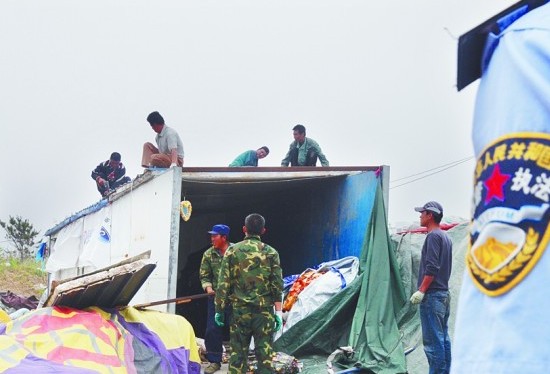 ????6月11日上午,記者在土堆上探訪發(fā)現(xiàn),經(jīng)過4天多的拆除施工,山上的違法建筑一半已經(jīng)拆除。多是由房主自拆,拆下的材料,房主正加緊收拾運(yùn)走。房主拆除有難度的地方,城管執(zhí)法人員帶著施工隊(duì)上前幫忙。另外,山下的一些廠房也已列入拆除范圍,只是還未開始施工。