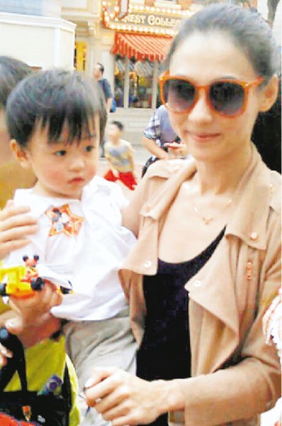 張柏芝單手抱著Quintus神態自若