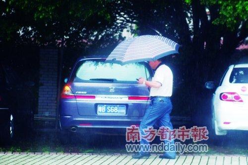 在陸續(xù)上班的人流中,一名男子逆行離開(kāi)辦公樓走向停車(chē)場(chǎng)一輛商務(wù)車(chē),這輛車(chē)正是被交警查處過(guò)的粵B SG 8××公務(wù)車(chē)。經(jīng)過(guò)街道辦一名保安指認(rèn),這名男子正是莫王松。