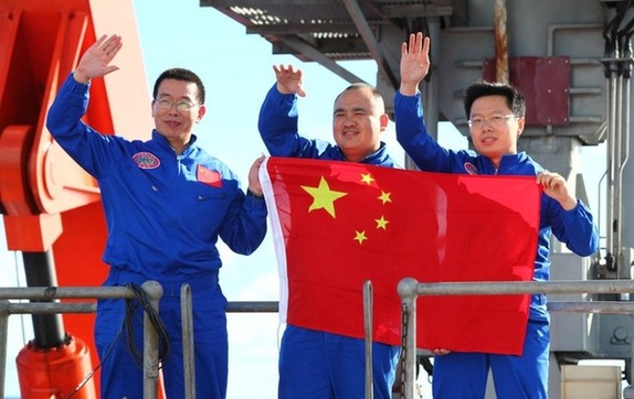 在完成全部預(yù)定試驗(yàn)任務(wù)后,“蛟龍”號(hào)于北京時(shí)間10時(shí)44分拋載返航。14時(shí)34分,潛水器浮出海面。14時(shí)45分,三名試航員走出潛水器。