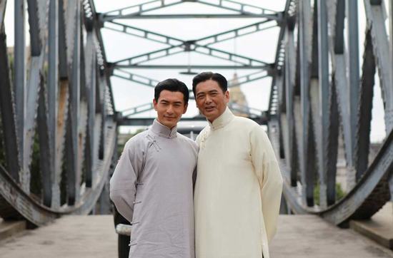 周潤發在《上海灘》中的許文強是經典角色,黃曉明也在翻拍的《新上海灘》中出演過許文強,而在劉偉強監制、王晶執導的新片《大上海》中,兩代許文強走到了一起。《大上海》目前正在上海車墩影視基地拍攝,昨日開放媒體探班,黃曉明身著長衫、梳著背頭首先亮相,而同樣打扮的周潤發隨后登場時,更引發全場歡呼。不獨媒體成影迷,一起合作的黃曉明、吳鎮宇、童菲都不約而同當起小粉絲,黃曉明說自己剛入行喜歡穿風衣,梳大背頭,其實是下意識地在模仿發哥的《英雄本色》,也封周潤發為偶像的吳鎮宇說“他真的很厲害”,而新人童菲就只顧說“他好帥”。