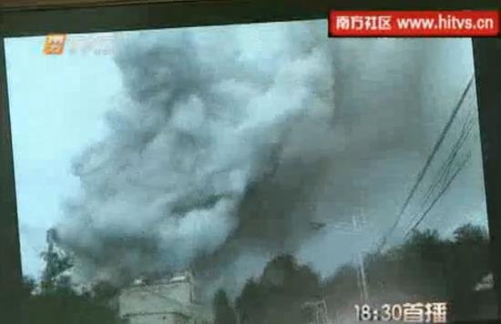 西坑村綜合市場離工廠約2公里,檔主陳先生稱,爆炸后日光村民小組上方冒出大量濃煙,持續約1個半小時。員工康小姐說,濃煙很嗆鼻,發生爆炸后,明火持續了1分多鐘。