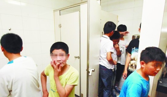 見有執法人員突查,一些上網的孩子躲進衛生間里。