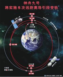 昨晨1時(shí)30分,神舟九號(hào)飛船進(jìn)行了首次變軌。至今日早晨5時(shí)前后,它進(jìn)行了5次變軌來追趕天宮一號(hào)。