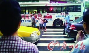 劫匪拖著孩子在斑馬線中間停住了。劉先生緊跟了過去,站到劫匪對面約一米遠的地方。