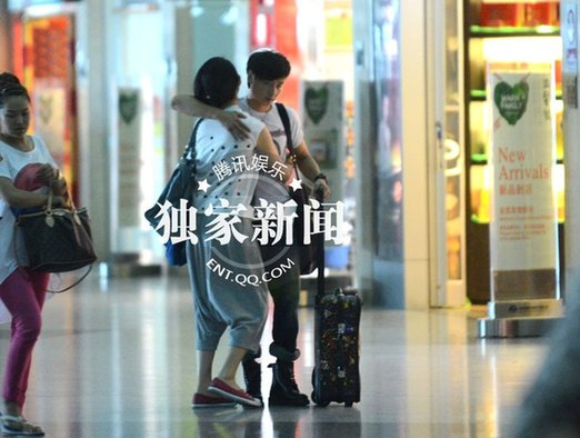 蔡少芬與老公擁抱告別戀戀不舍 機場當眾纏綿(組圖)