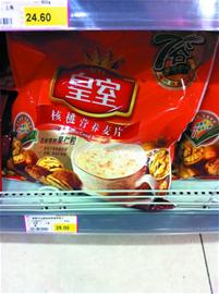 ????記者在位于中山路一家超市看到了被曝出大腸桿菌超標的皇室核桃營養麥片和周氏牌牛奶加鈣即溶麥片。對于被曝光一事,超市銷售人員表示并不知情。此外,記者看到了同樣被曝出大腸桿菌超標的周氏牛奶加鈣即溶燕麥片,這種重量為700g的燕麥片售價為25.8元。