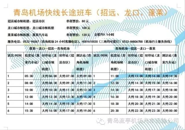 招遠龍口蓬萊到青島機場大巴 5:30-15:30