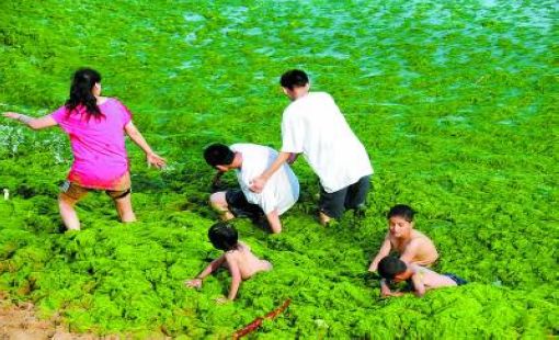 首發:青島浴場清理滸苔3萬噸 游客草叢中跋涉(組圖)