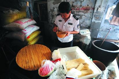 “海南島路1號這兩家豆腐作坊,均沒有營業執照和其他證件,黑作坊內部衛生條件較差,物品擺放雜亂,基本不具備食品生產安全條件。”執法人員稱,這兩家豆制品作坊每天能生產上千斤豆腐,當即責令兩位作坊主馬上停止生產并自行拆除生產設備。據悉,當日下午4點30分,黃島區食安辦再次組織各部門執法人員和辦事處到現場檢查,兩加工點都已停止生產,正在拆除設備。黃島各執法部門將對兩黑作坊情況進行跟蹤關注,發現再有違法生產現象,將組織聯合執法、強制取締。