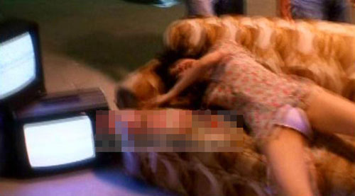 《古惑仔之只手遮天》劇照。鄭伊健的女友,被張耀揚(yáng)抓住,先奸后殺,劇照為被殺前夕的反抗。