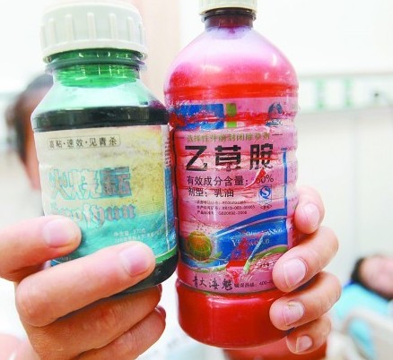 ????“這種農(nóng)藥很毒,3毫升就可致死?!毙§o的主治醫(yī)生告訴記者,百草枯是一種快速滅生性除草劑,具有觸殺和一定內(nèi)吸作用。能迅速被植物綠色組織吸收,使其枯死。在土壤中迅速與土壤結(jié)合而純化,對植物根部及多年生地下莖及宿根無效。百草枯對人毒性極大,且無特效藥,口服中毒死亡率可達90%以上,目前已被20多個國家禁止或嚴格限制使用。
