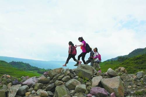 許多孩子上學途中都要經過一座有30年歷史、長滿銹斑的鐵索橋。對孩子們來說,在每天往返學校接近兩個小時的曲折山路里,走這座鐵索橋成了最輕松的一件事情,因為至少沒有大石頭突然從山上掉下來,也不會被一些長刺的植物劃傷,更不會跌倒。