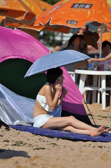 青島海濱浴場現人海 比基尼美女清涼養眼(組圖)